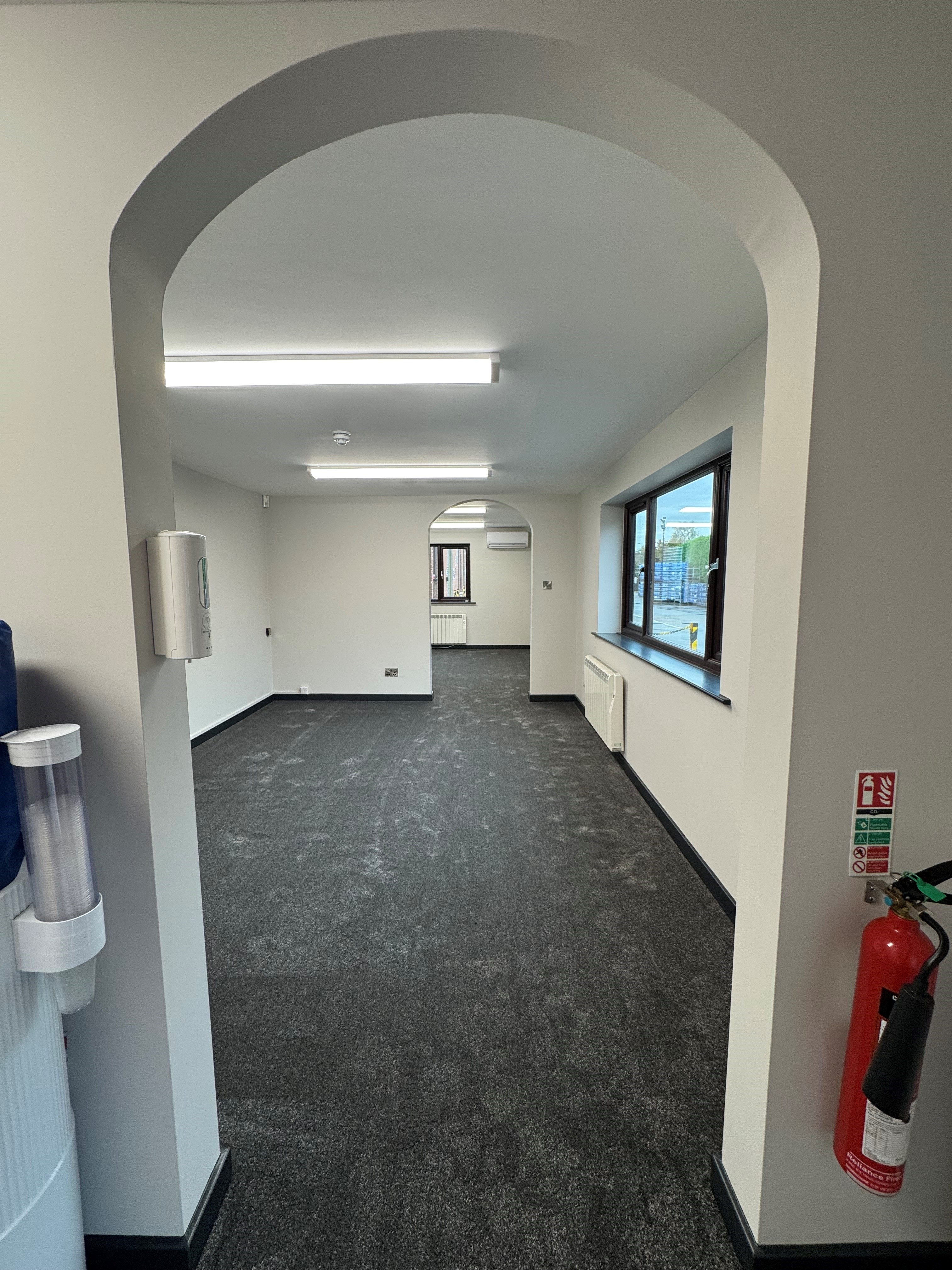Natural Lighting / Heat Retention:- via ‘LPC approved’ Kingspan Insulated roof and apex cladding / new solar-control double-glazing in offices / deep Knauff thermal / acoustic fire-rated office roof insulation.